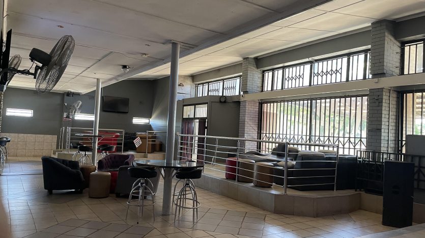 Comprises of a large car lot with ample space to build or add additional features, a lush and well maintained seating area, a fully functional restaurant with a serving area and kitchen. Built-in braai stands, a cold room, and an additional rear bar area. A spacious sports bar with an entertainment area, serving counter, a VIP lounge and a shaded outdoor seating area.