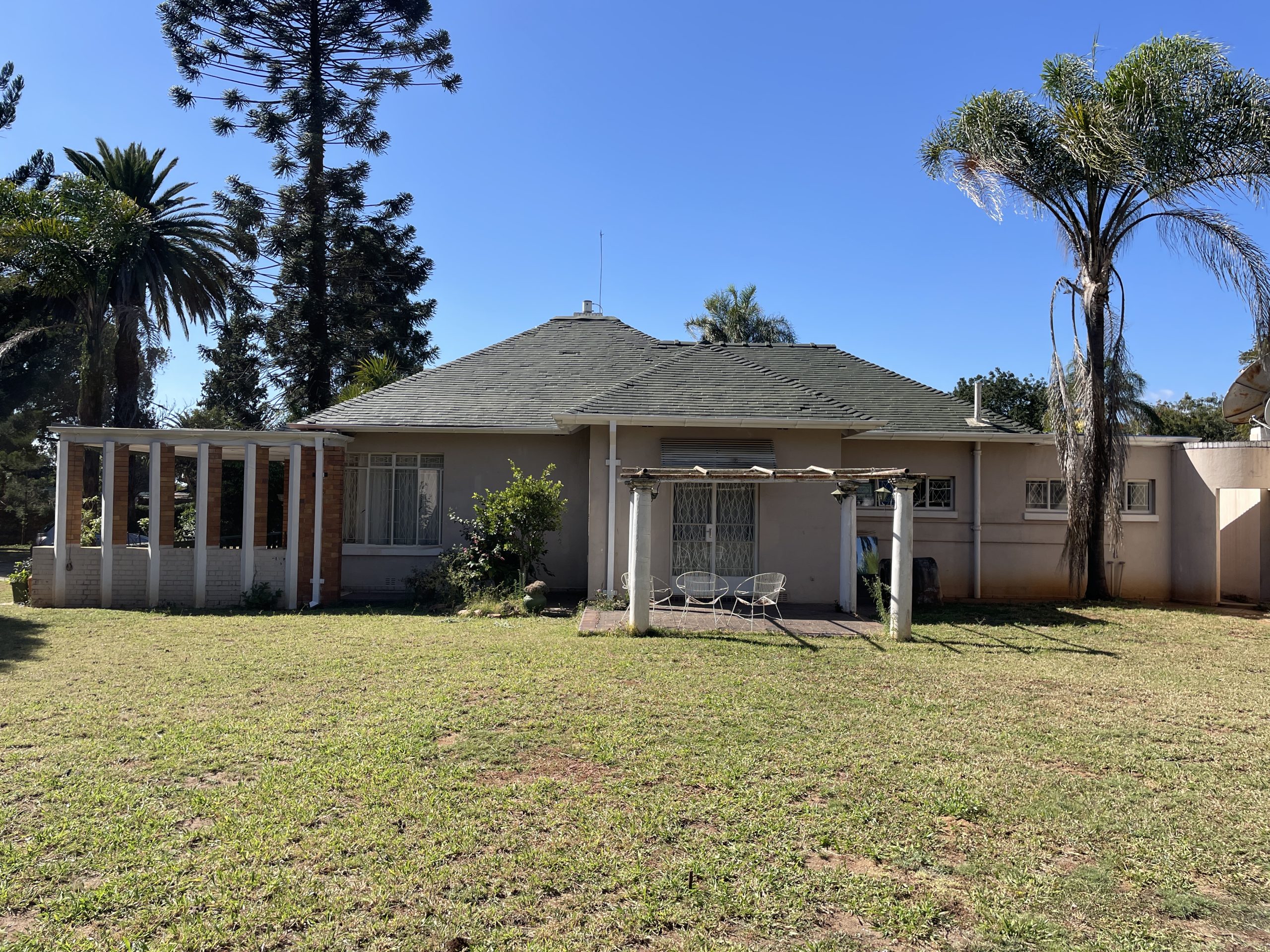 Outside, the home features 2 carports, a little storeroom/toolroom, a separate storeroom, and single staff quarters. A prolific borehole ensures ample water supply, and the walled and gated grounds provide privacy and security.