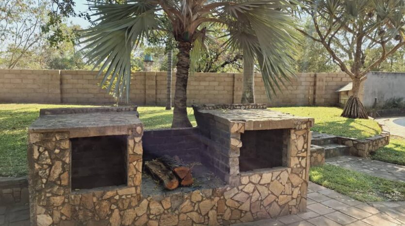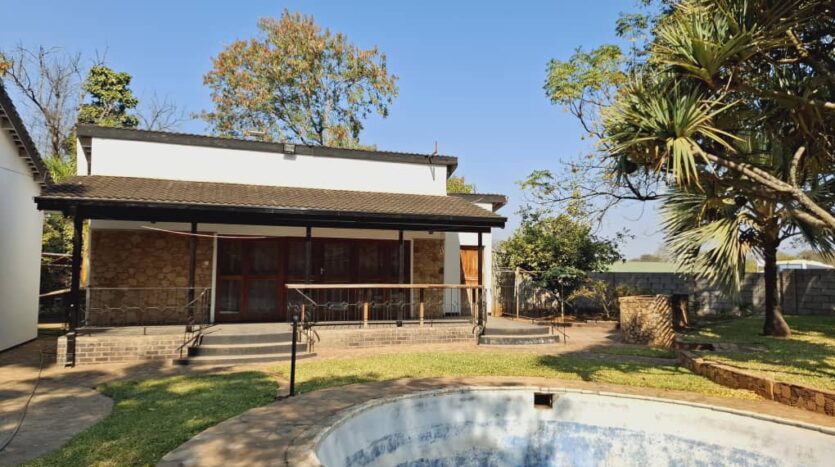 The property also includes a swimming pool (currently not in use), built-in braai, double carport with adjoining storage facilities, and domestic quarters consisting of two rooms with separate shower and toilet. Additional features include solar geysers, a 2,000-litre gravity-fed water tank, and a 5,000-litre tank with booster pump. The property is fully walled and gated, ensuring privacy and security.