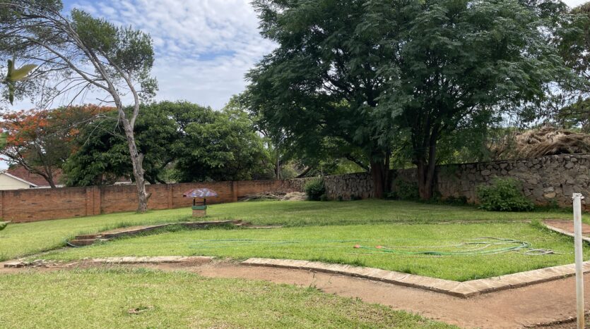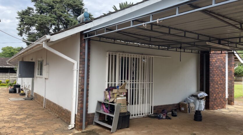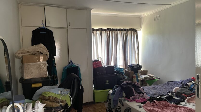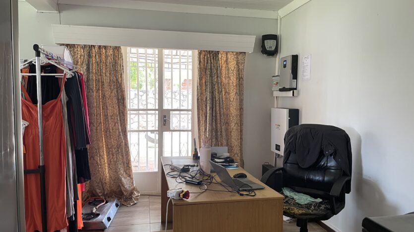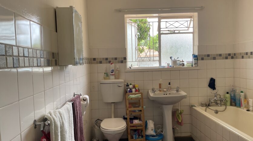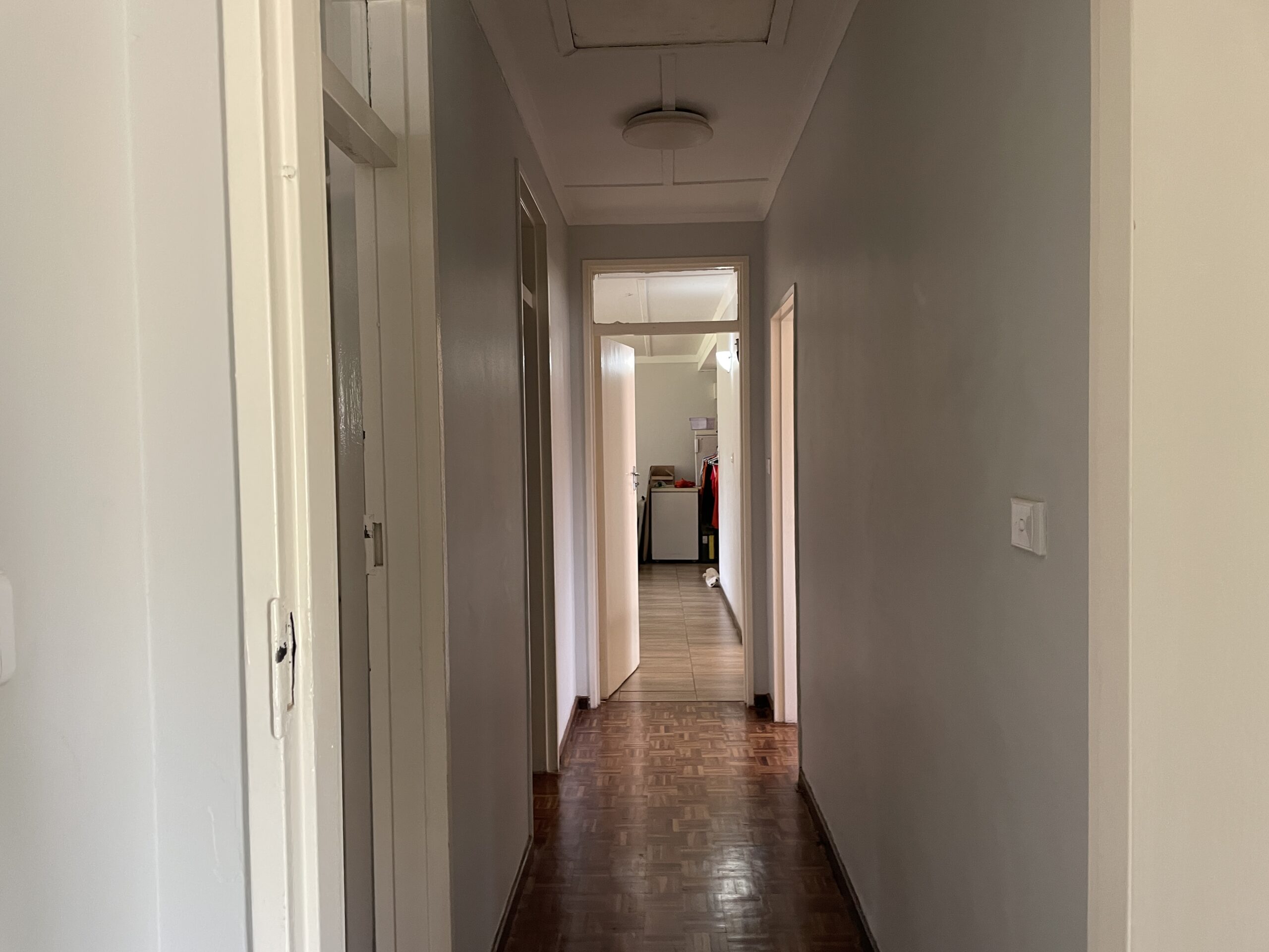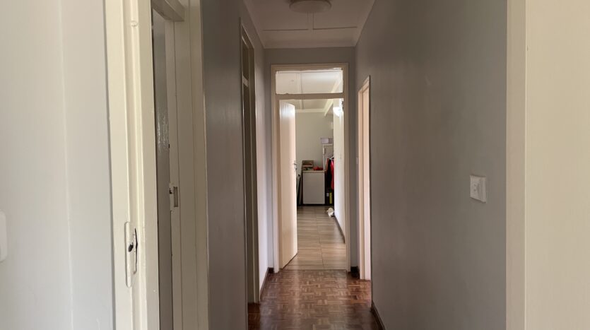 This spacious brick-under-tile home has been well maintained and sits on a generous 1,683m² stand. It features 3 bedrooms with built-in cupboards and parquet flooring, including a main bedroom with an en suite (WC, basin, and shower). The fully tiled family bathroom comes with a WC, basin, and bathtub.