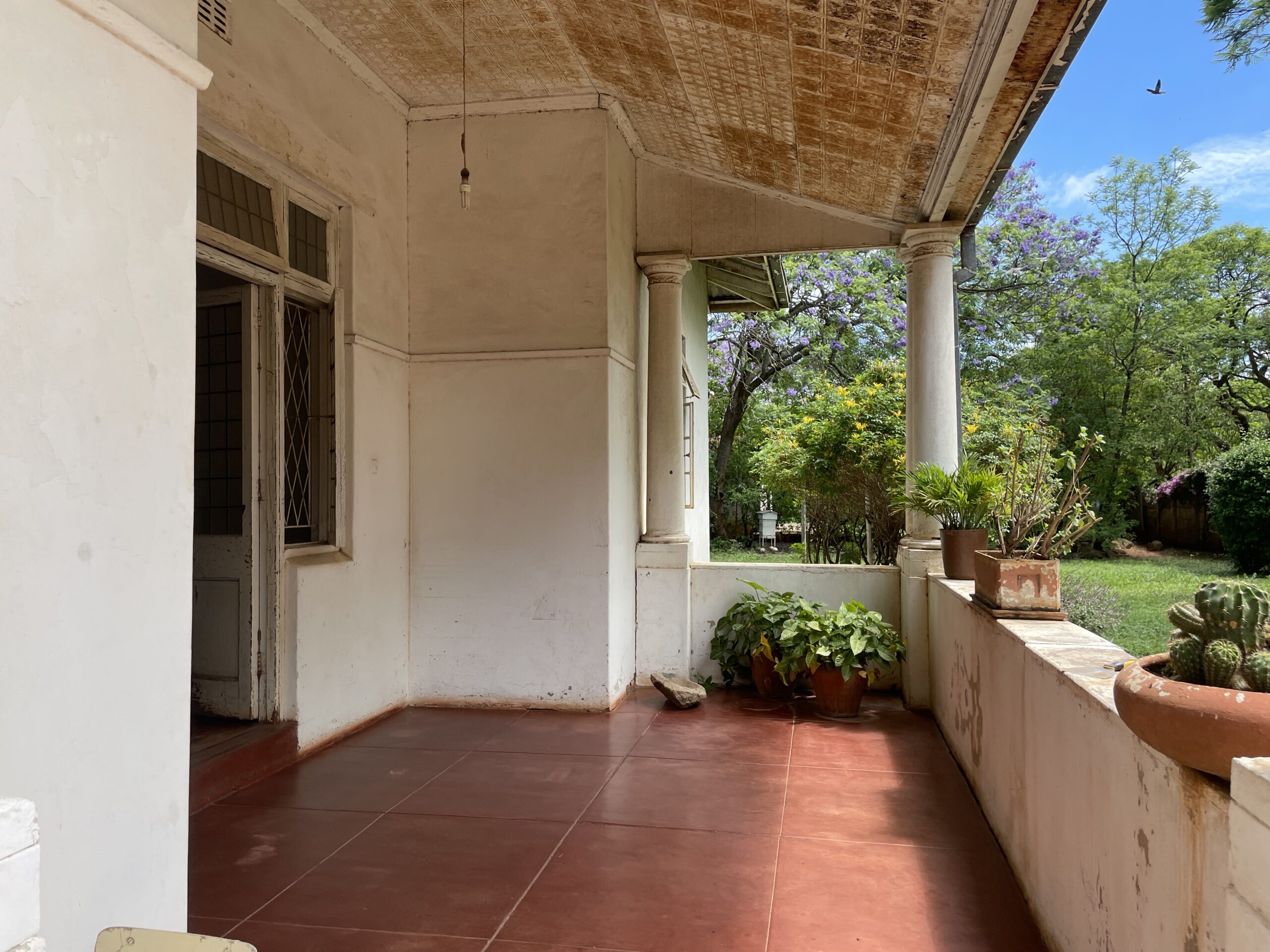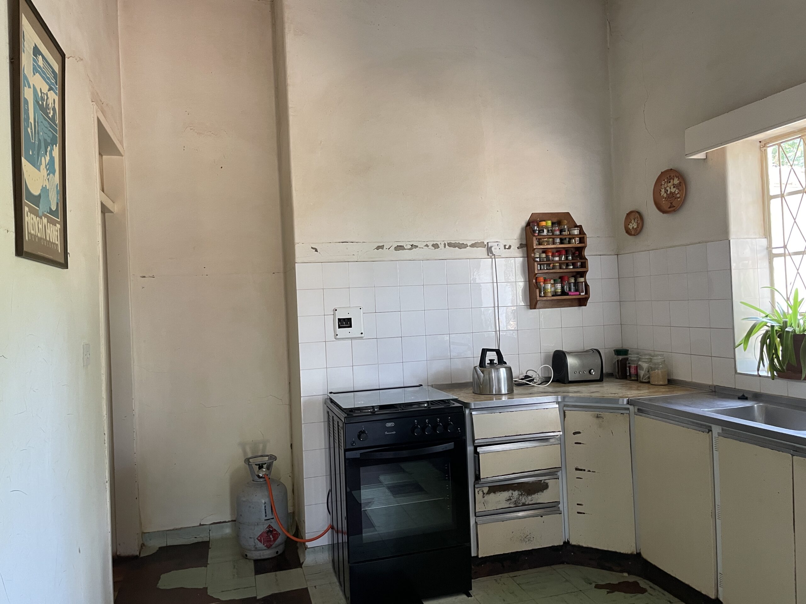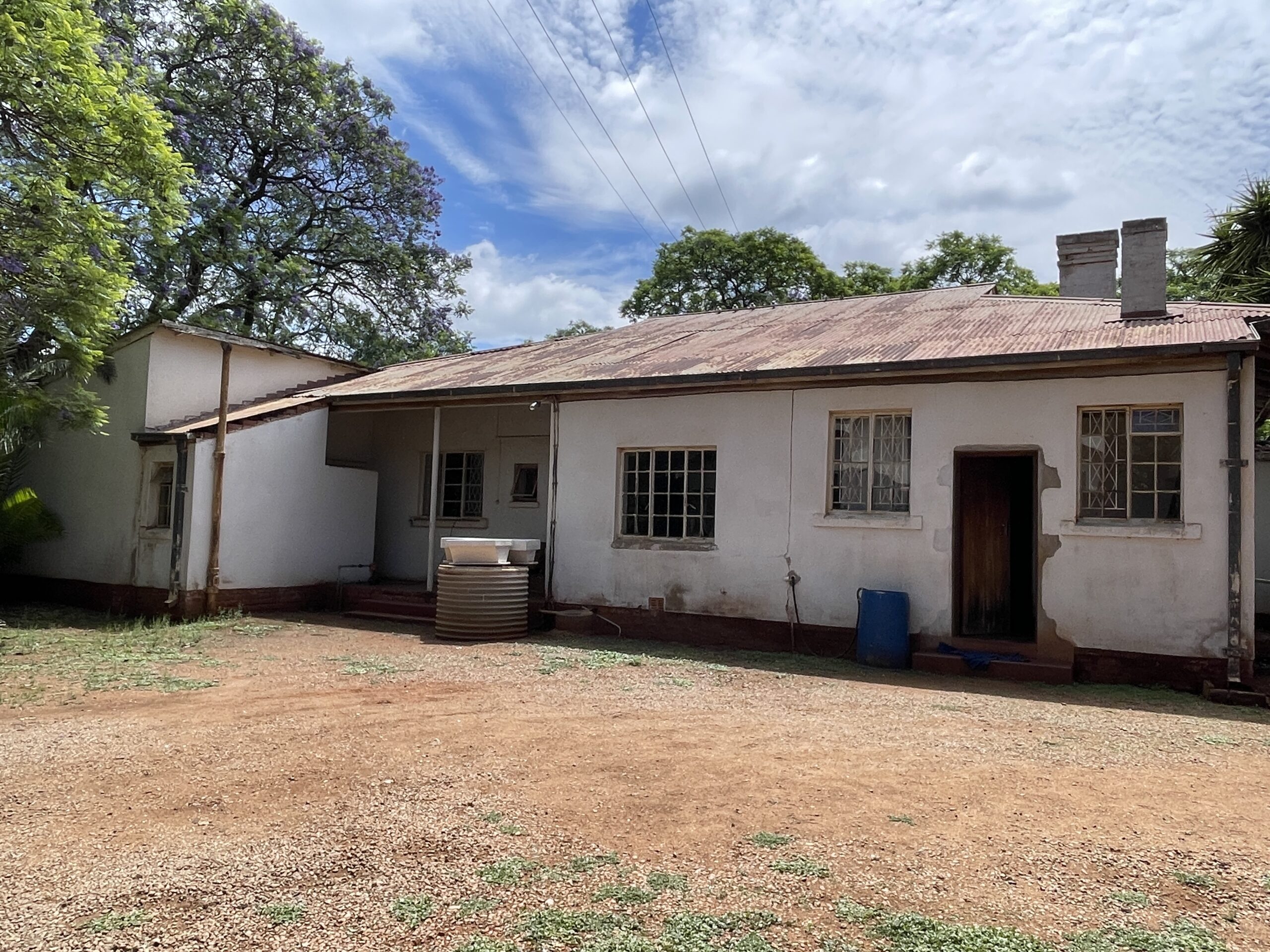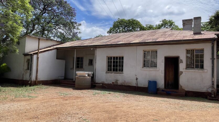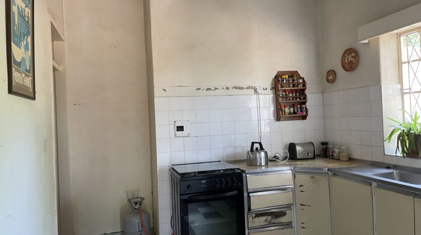 Set on a generous 2 974m² stand, this property offers exceptional space, versatile living options and solid investment potential. The main house is brick under corrugated iron and features four bedrooms with classic lead-ins, suspended wooden flooring throughout the bedrooms, passage and living areas, and a main bedroom fitted with built-in cupboards. The family bathroom includes a WC, basin and bathtub. A fitted Monarch kitchen with walk-in pantry and scullery provides practical functionality, though it would benefit from a modern update. The combined lounge and dining room is warm and inviting, centred around a working fireplace, and opens to an enclosed veranda. An external WC is also on the property but currently not functional. Extensions added over the years have resulted in notable wall cracks, and some floors have had termite damage, though treatment has already been carried out.