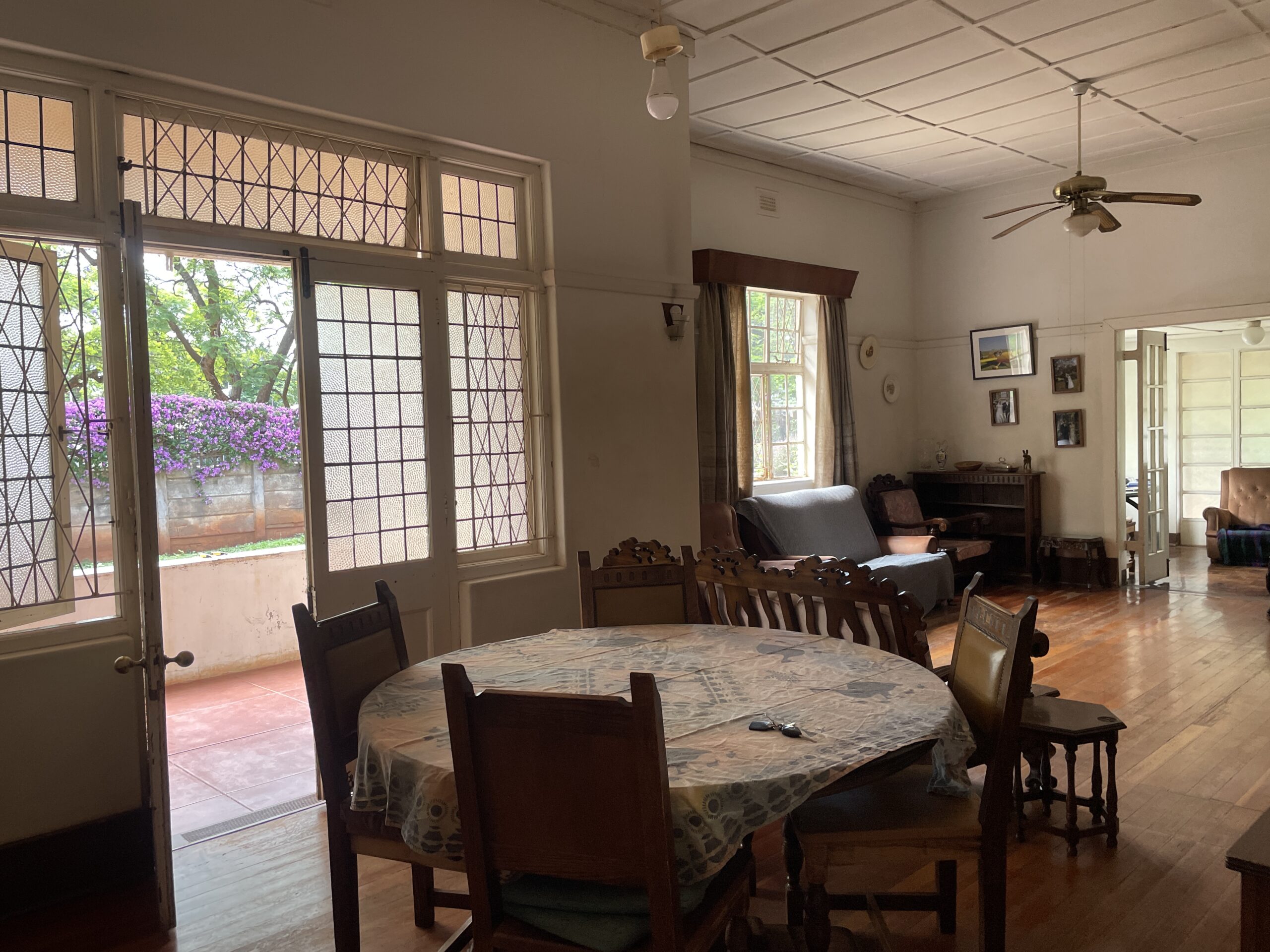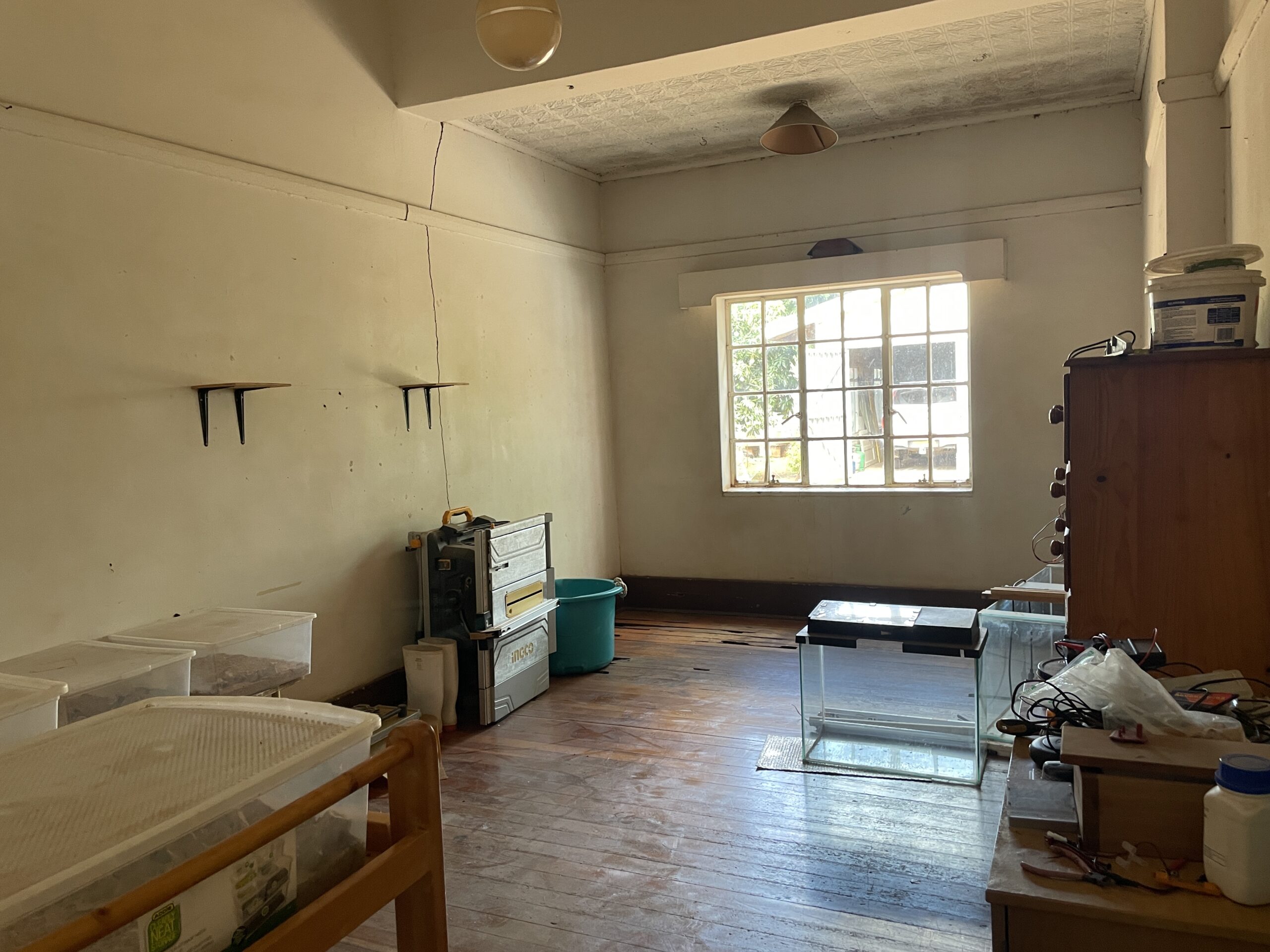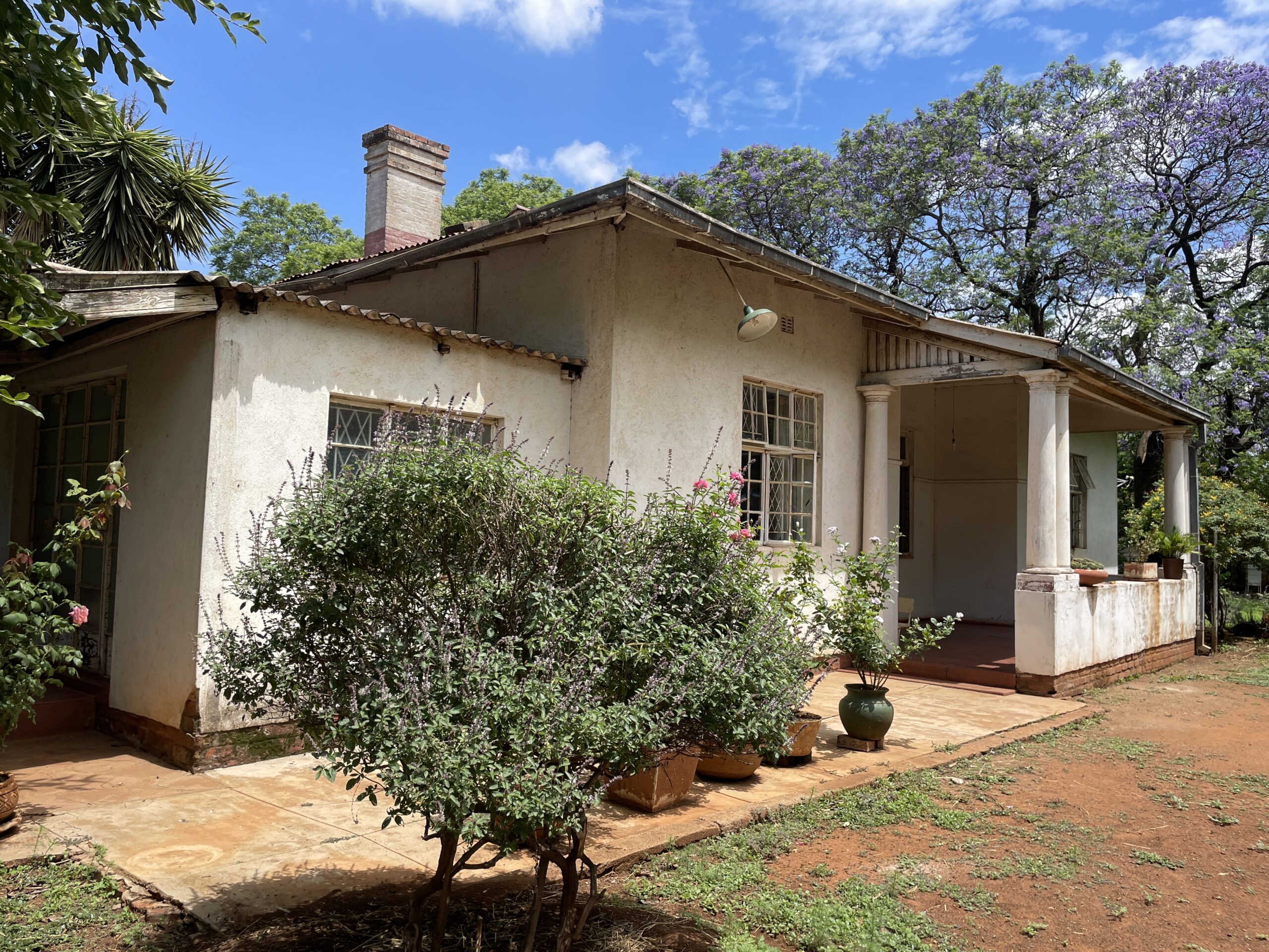 Set on a generous 2 974m² stand, this property offers exceptional space, versatile living options and solid investment potential. The main house is brick under corrugated iron and features four bedrooms with classic lead-ins, suspended wooden flooring throughout the bedrooms, passage and living areas, and a main bedroom fitted with built-in cupboards. The family bathroom includes a WC, basin and bathtub. A fitted Monarch kitchen with walk-in pantry and scullery provides practical functionality, though it would benefit from a modern update. The combined lounge and dining room is warm and inviting, centred around a working fireplace, and opens to an enclosed veranda. An external WC is also on the property but currently not functional. Extensions added over the years have resulted in notable wall cracks, and some floors have had termite damage, though treatment has already been carried out.