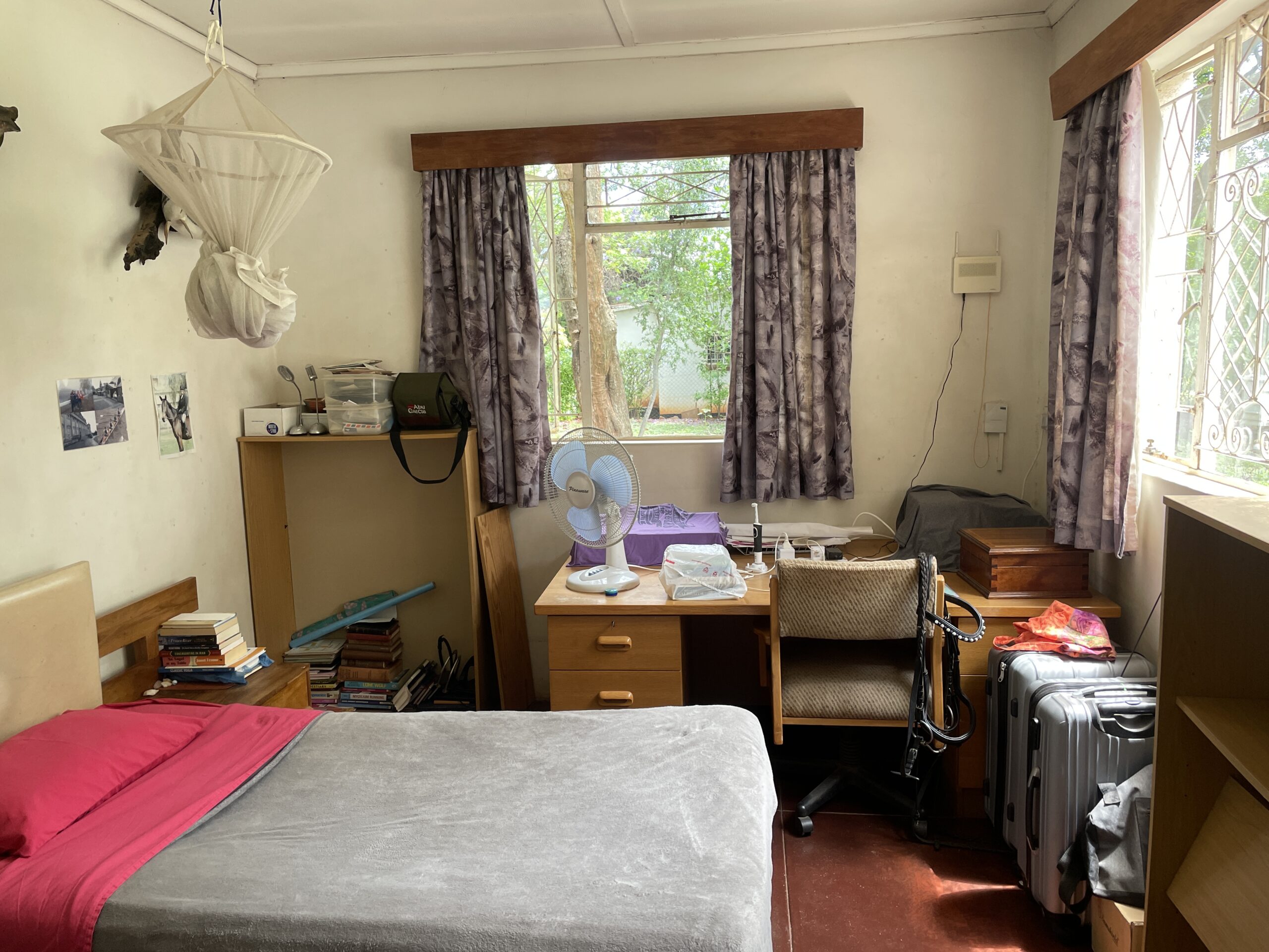 A standout feature is the solid, well-built cottage constructed of brick under asbestos. It comprises an office with a strong room complete with a concrete roof slab and gun safes, two bedrooms each with an attached WC and shower, an additional bedroom, a kitchenette with sink unit and terrazzo counters, and a neat veranda.