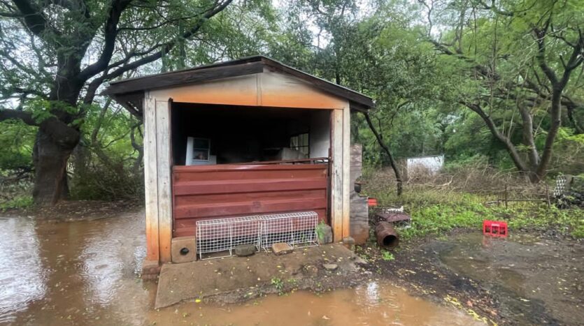 The property comprises a fitted kitchen, lounge cum dining area with fireplace, family bathroom, and an enclosed verandah. Additional features include staff quarters, a single lock-up garage, and a single carport.