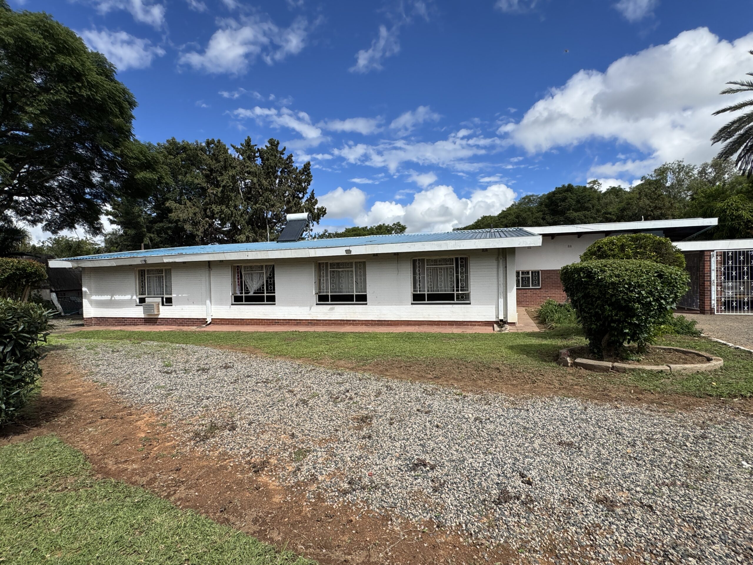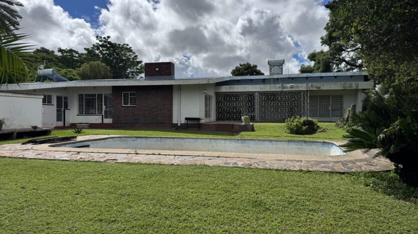 The property also includes a swimming pool (currently not functioning), borehole, and is fully walled and gated, offering privacy and security.