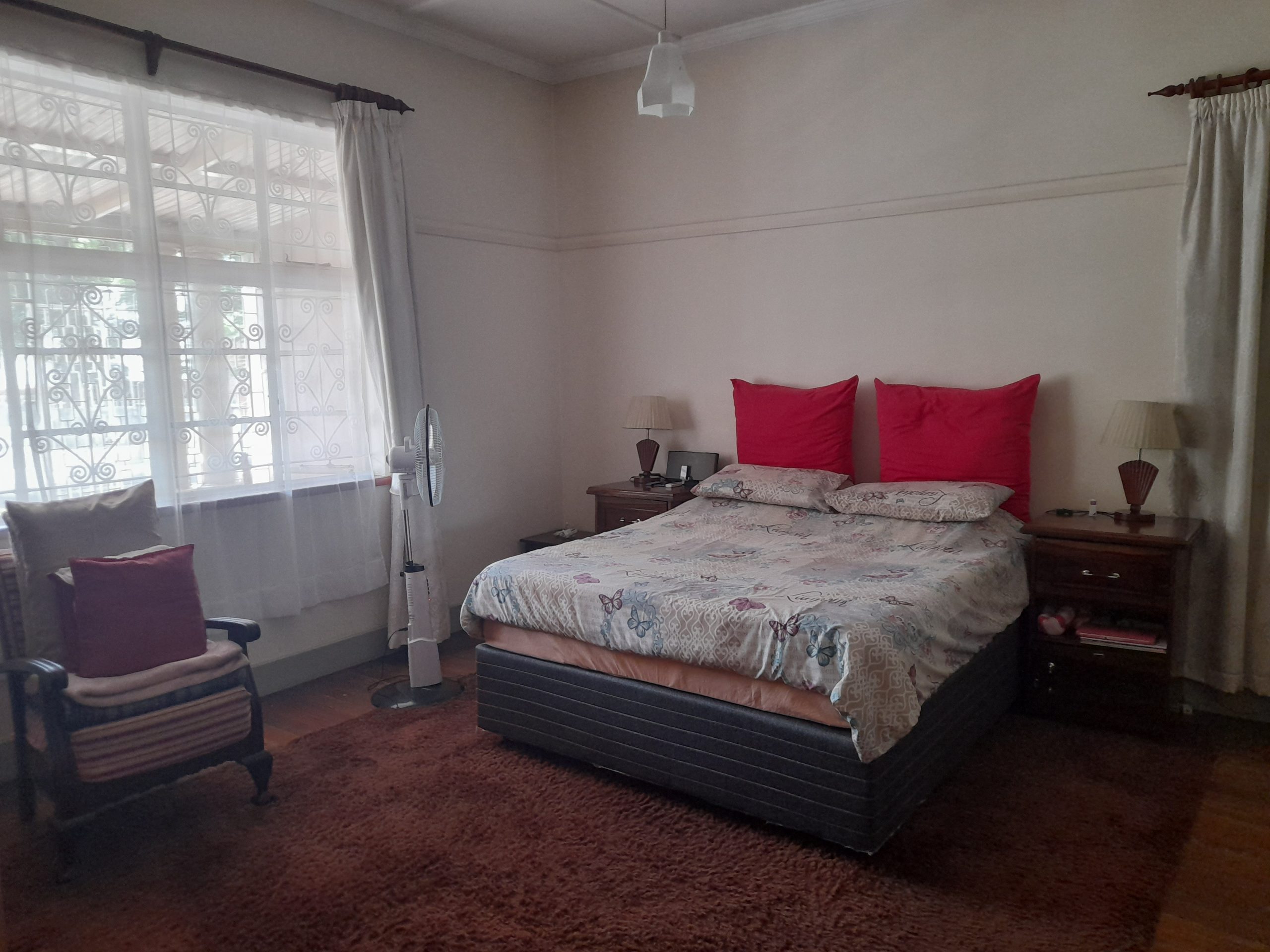 Family home comprising of three bedrooms, a family bathroom with a separate toilet, kitchen with pantry and storeroom, lounge, separate dining room area, an open verandah, and a large room to the side of the verandah for another bedroom/study. The property is complete with a neat garden , staff quarters and one garage.